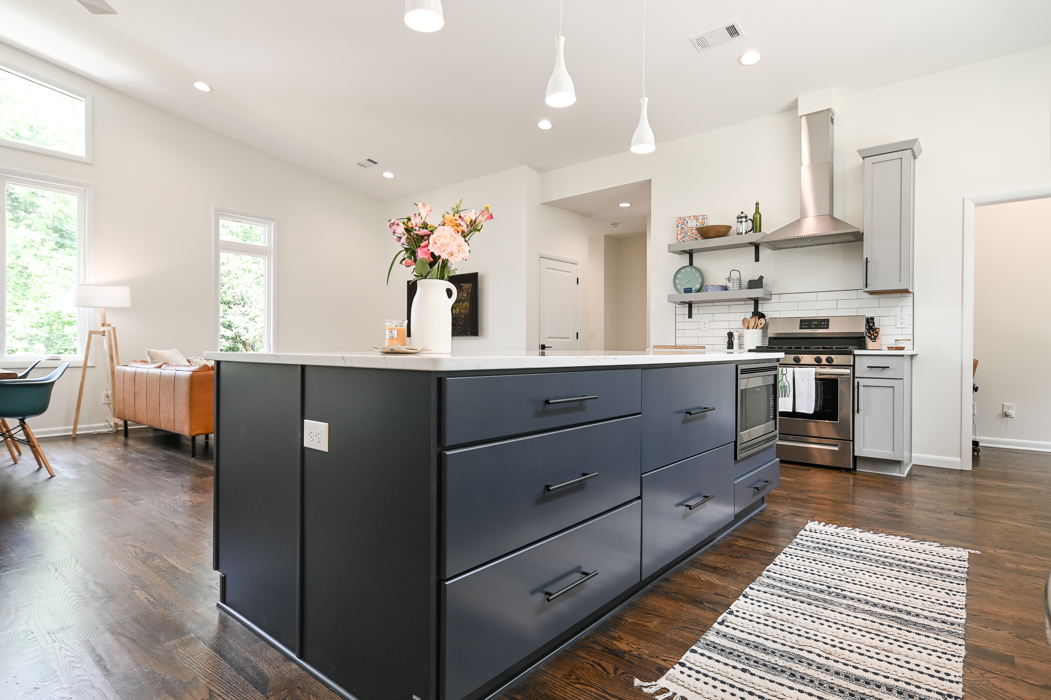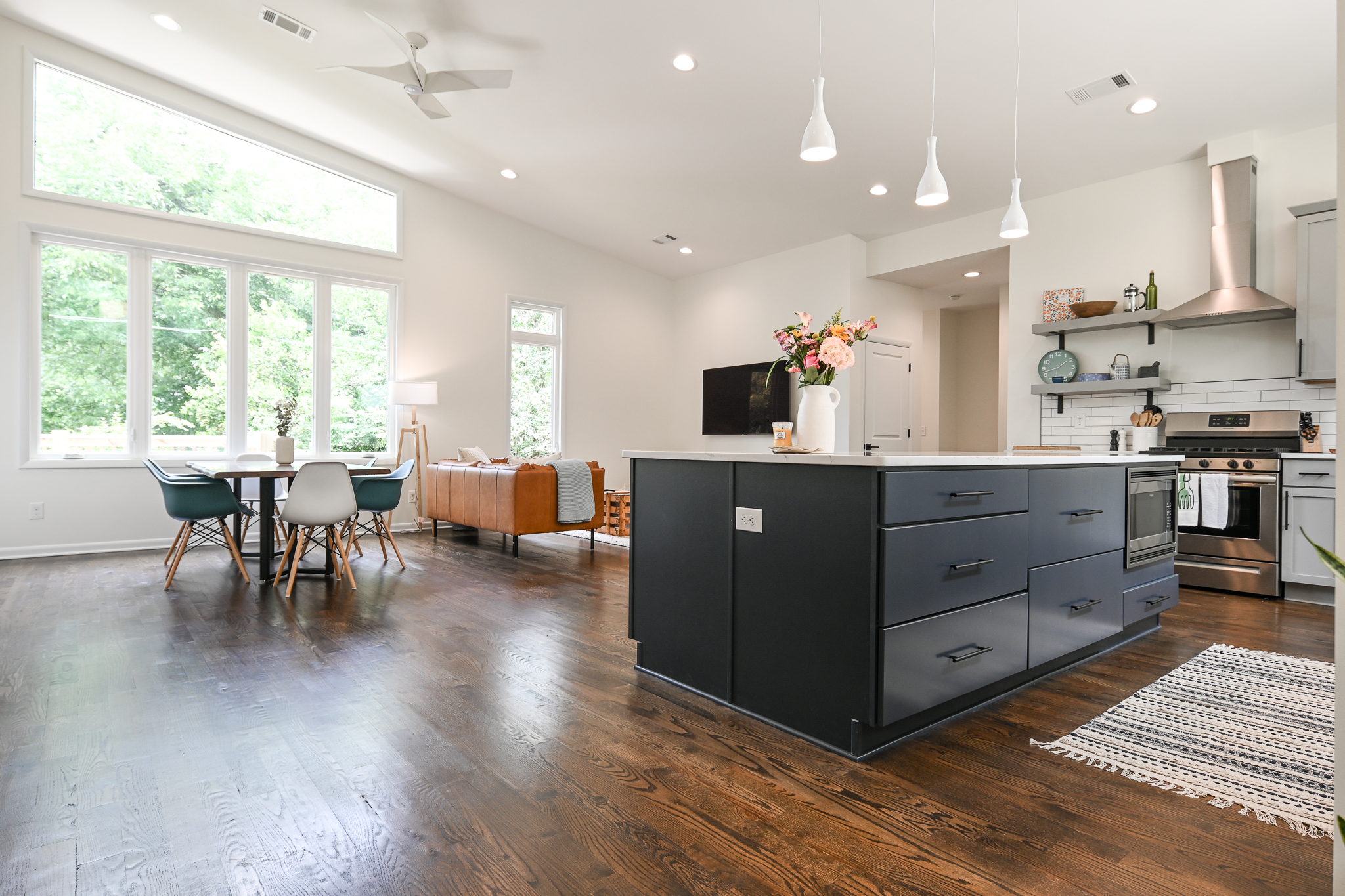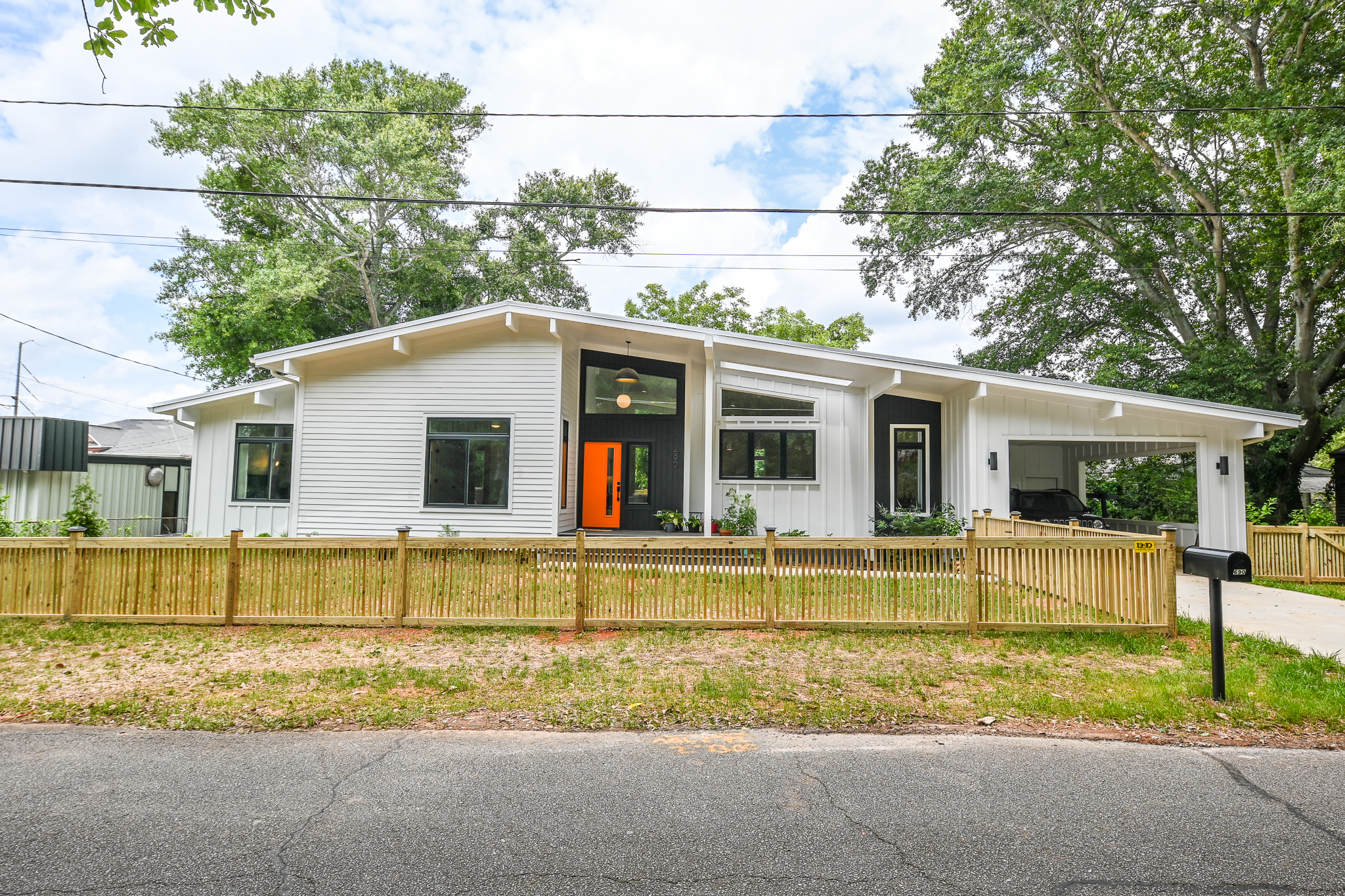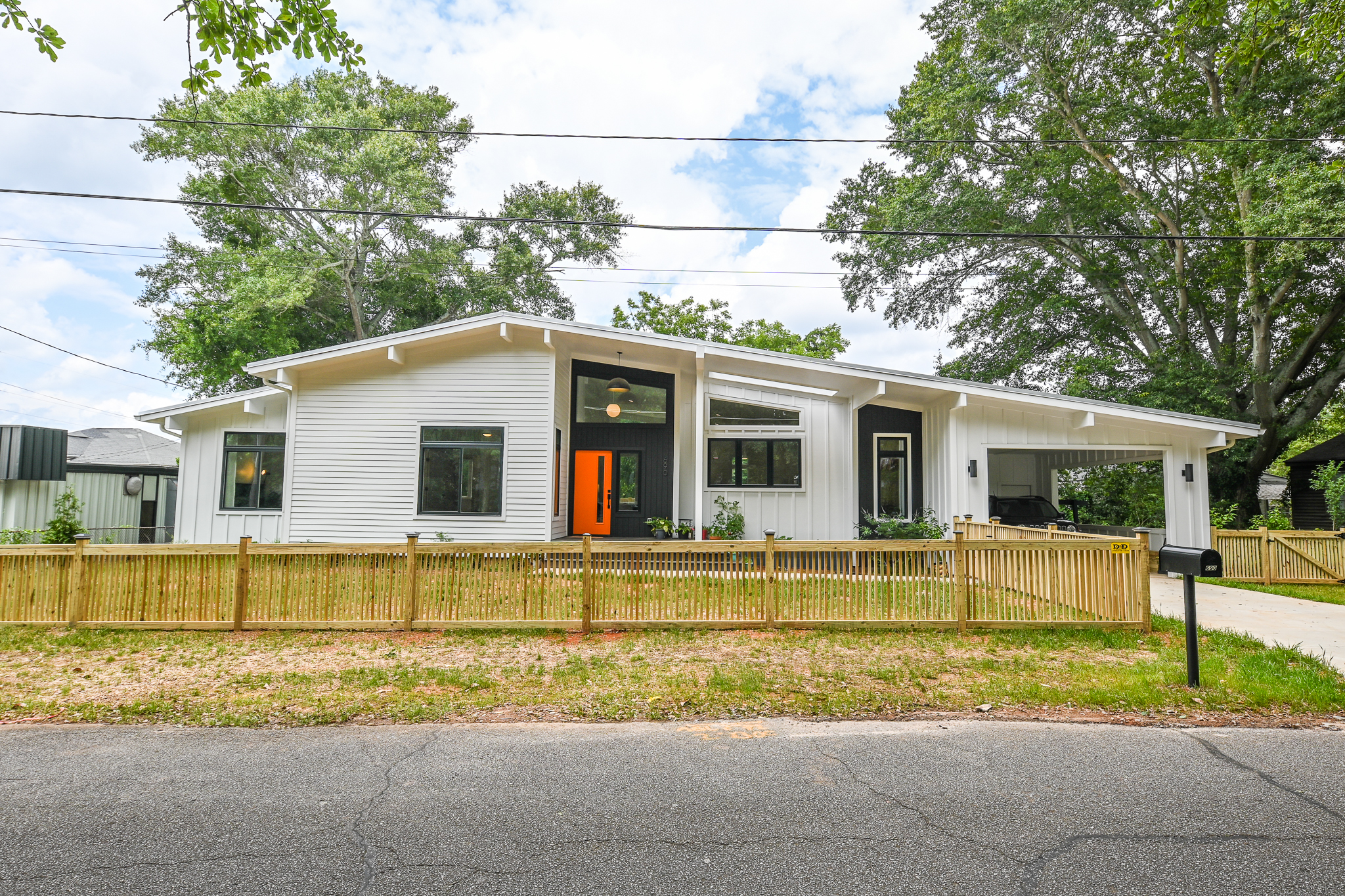 This Midcentury Modern home was a full new build that brought a modern luxury design to a retro shaped home. This home is located near the medical district of Athens, GA also known as Normal Town. With its unique shape and its fun color pallet, this home is a show stopper to all who pass it!