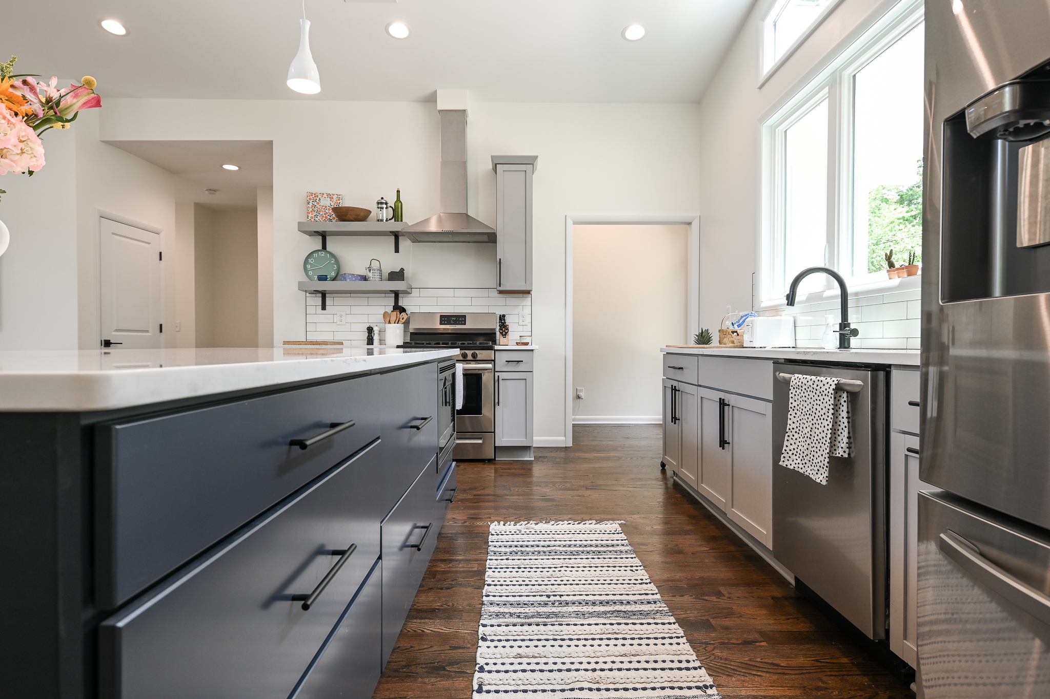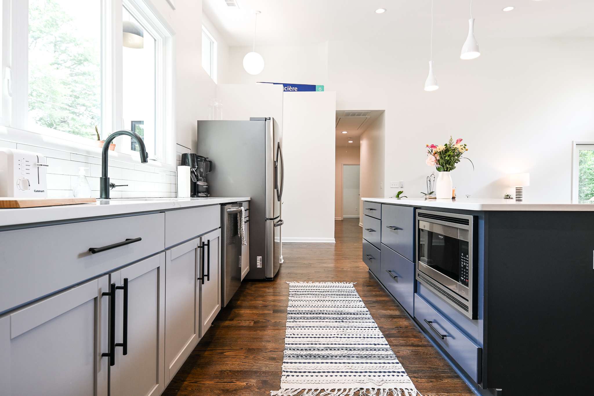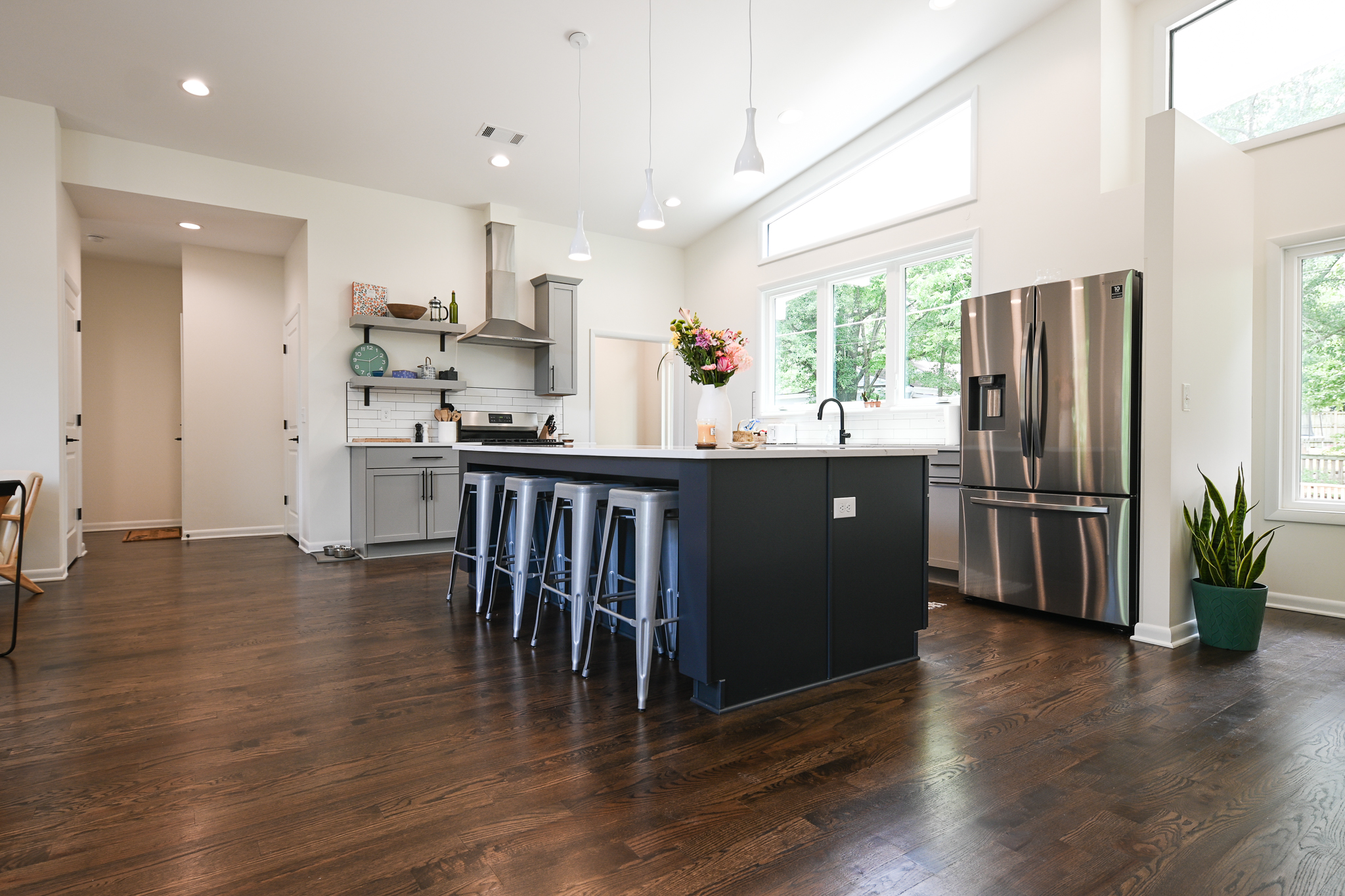This Midcentury Modern home was a full new build that brought a modern luxury design to a retro shaped home. This home is located near the medical district of Athens, GA also known as Normal Town. With its unique shape and its fun color pallet, this home is a show stopper to all who pass it!