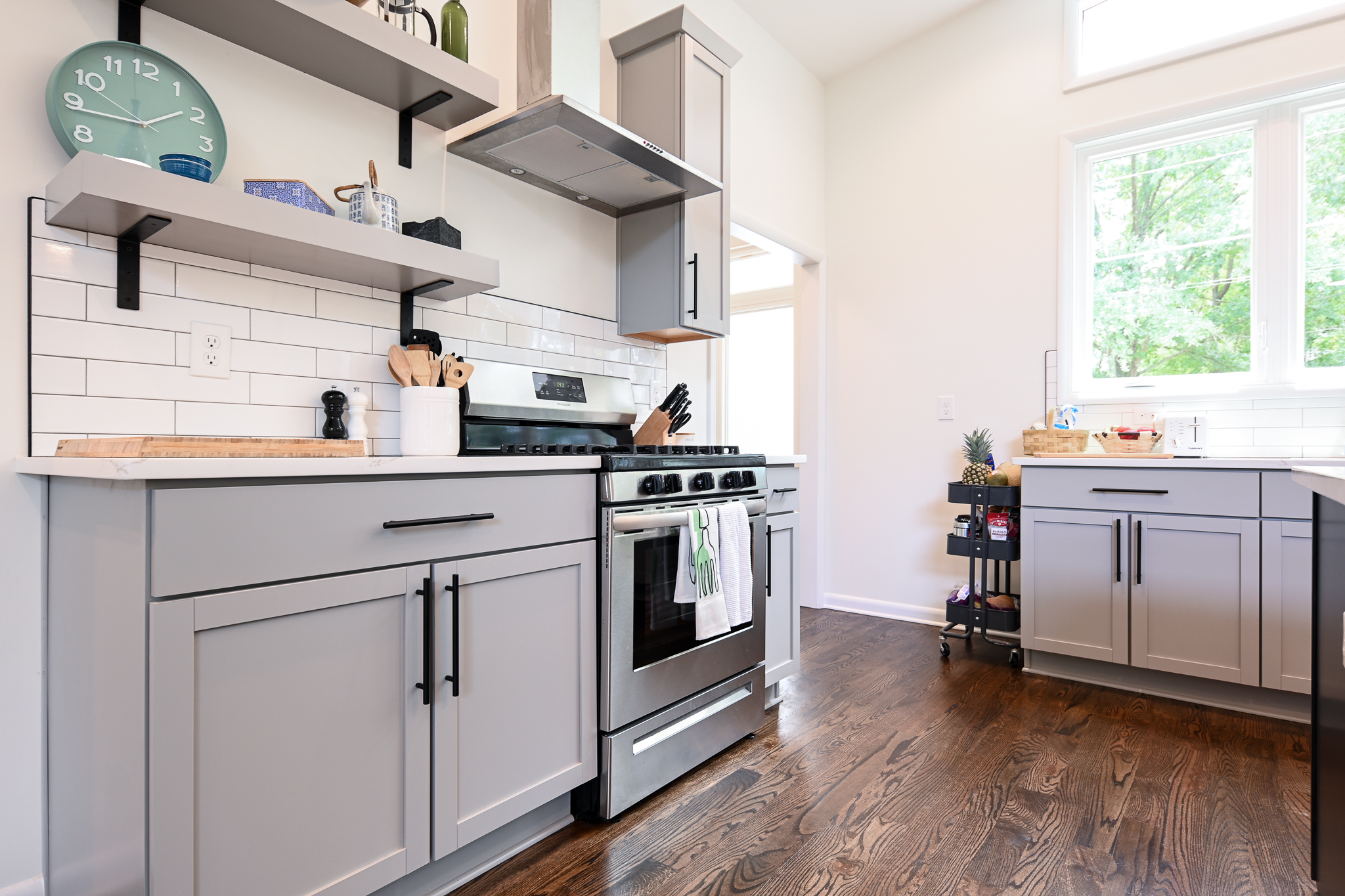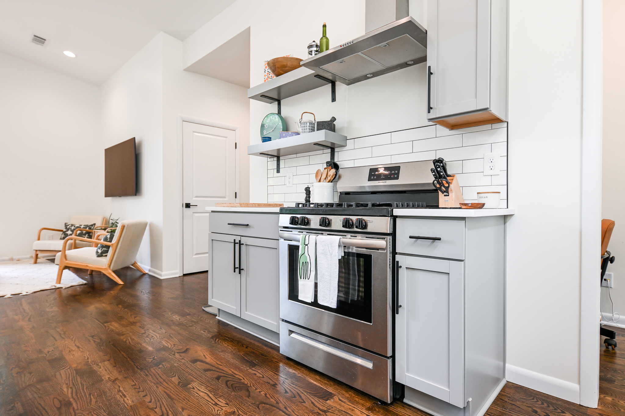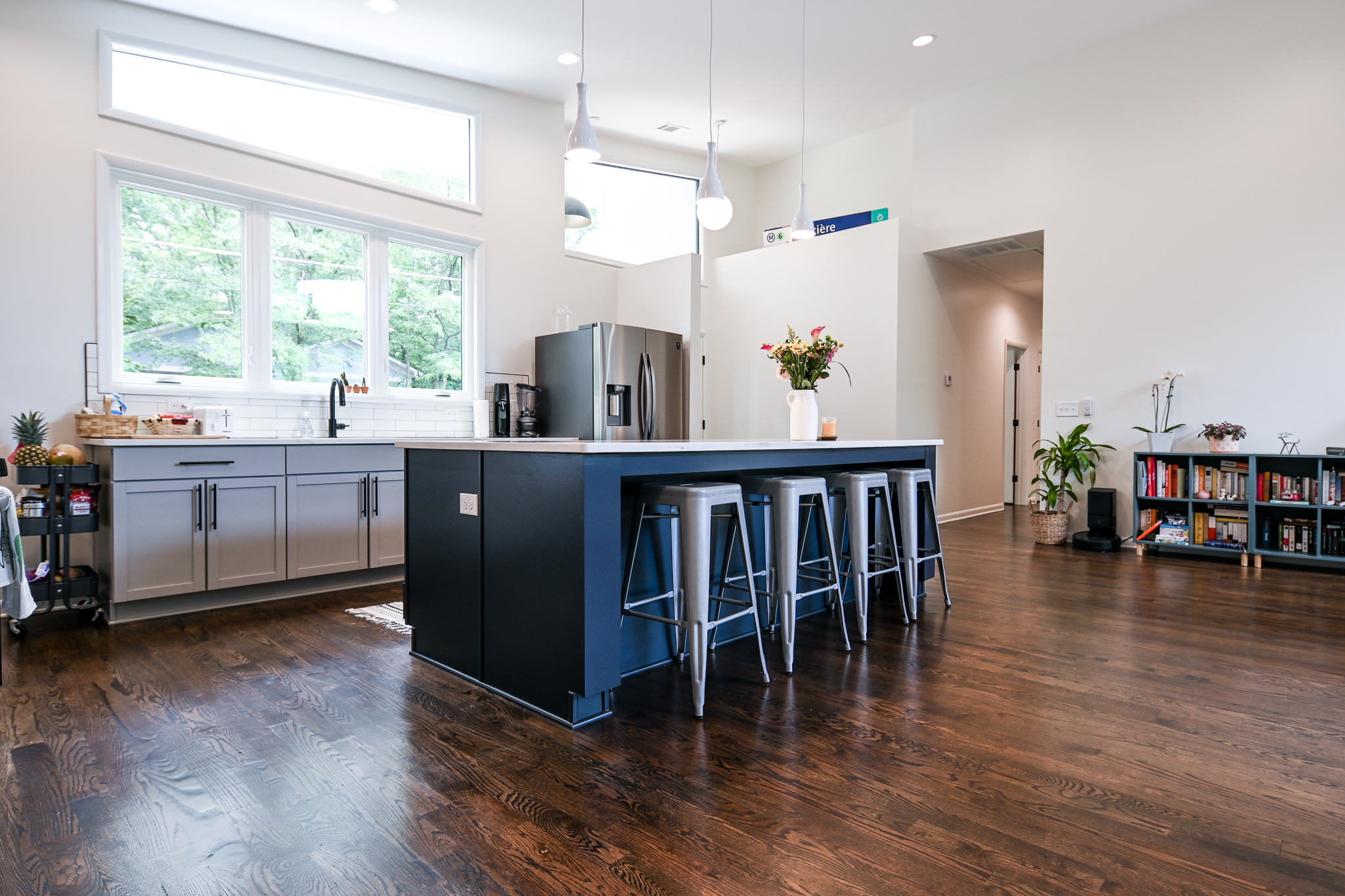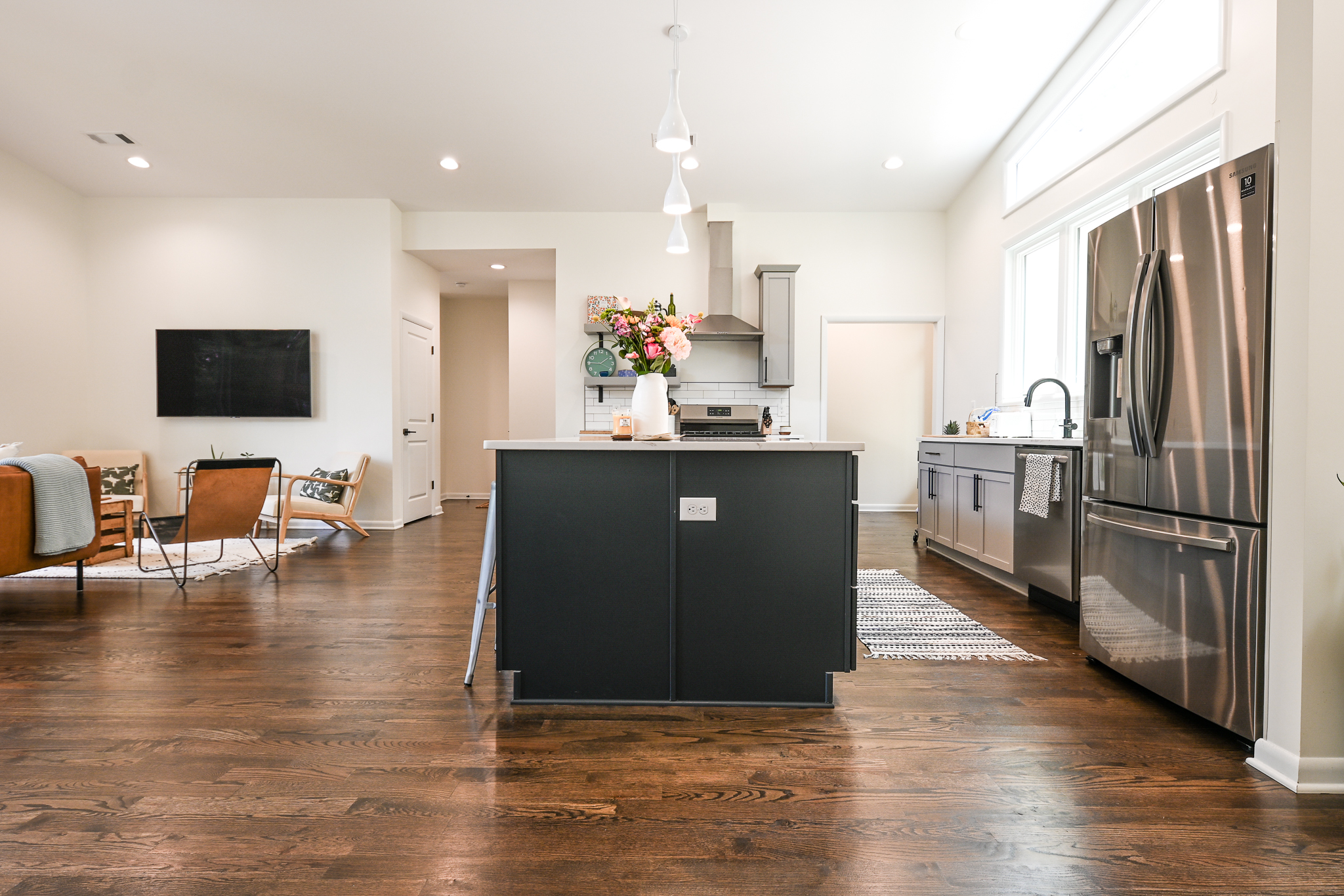 This Midcentury Modern home was a full new build that brought a modern luxury design to a retro shaped home. This home is located near the medical district of Athens, GA also known as Normal Town. With its unique shape and its fun color pallet, this home is a show stopper to all who pass it!